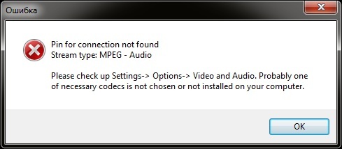 #118Как уже неоднократно писал мой IPTV провайдер транслирует радиостанции в формате mp3. При этом в ProgDVB поток определяется как mp2, соответственно для декодирования потока берется кодек из графы mpeg. Если кодек не будет уметь декодировать mp3, то появится ошибка, однако граф все равно создается с кодеком по умолчанию для mp3 (mp3 decoder dmo). В принципе можно использовать кодек mp2, который декодирует mp3, но к сожалению для себя не нашел ничего лучше чем AC3 filter, который раскладывает 2.0 в 5.1 именно так, как мне нравится. Однако декодировать mp3 не умеет. Возможно ли отключить сообщение об ошибке, если граф все равно создался, пусть и с другим кодеком ?