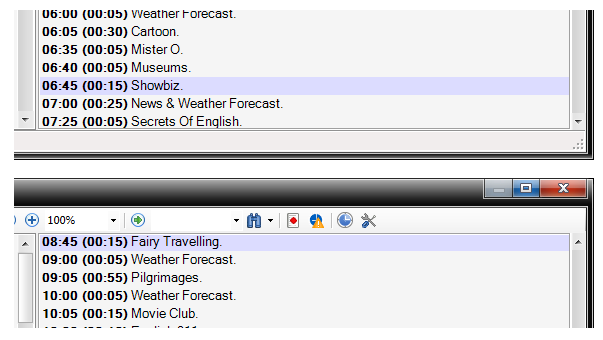 Ещё баг. При положении как на первой картинке нажимаем PageDown и получаем положение на второй картинке. Передачи между 7:30 и 8:45 не были показаны, а так и пропустить что-либо важное можно.