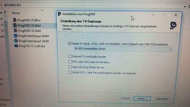 Software: ProgDVBnet6 habe ich zuerst von der CD installiert, dann aber auch das neuste Program von progdvb.com : ProgDVB x64 7