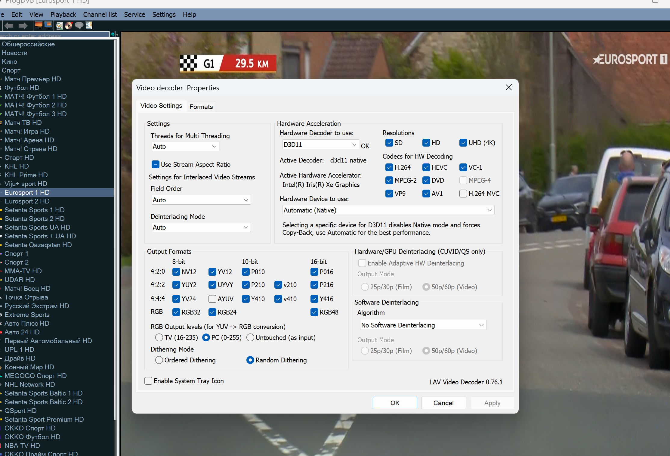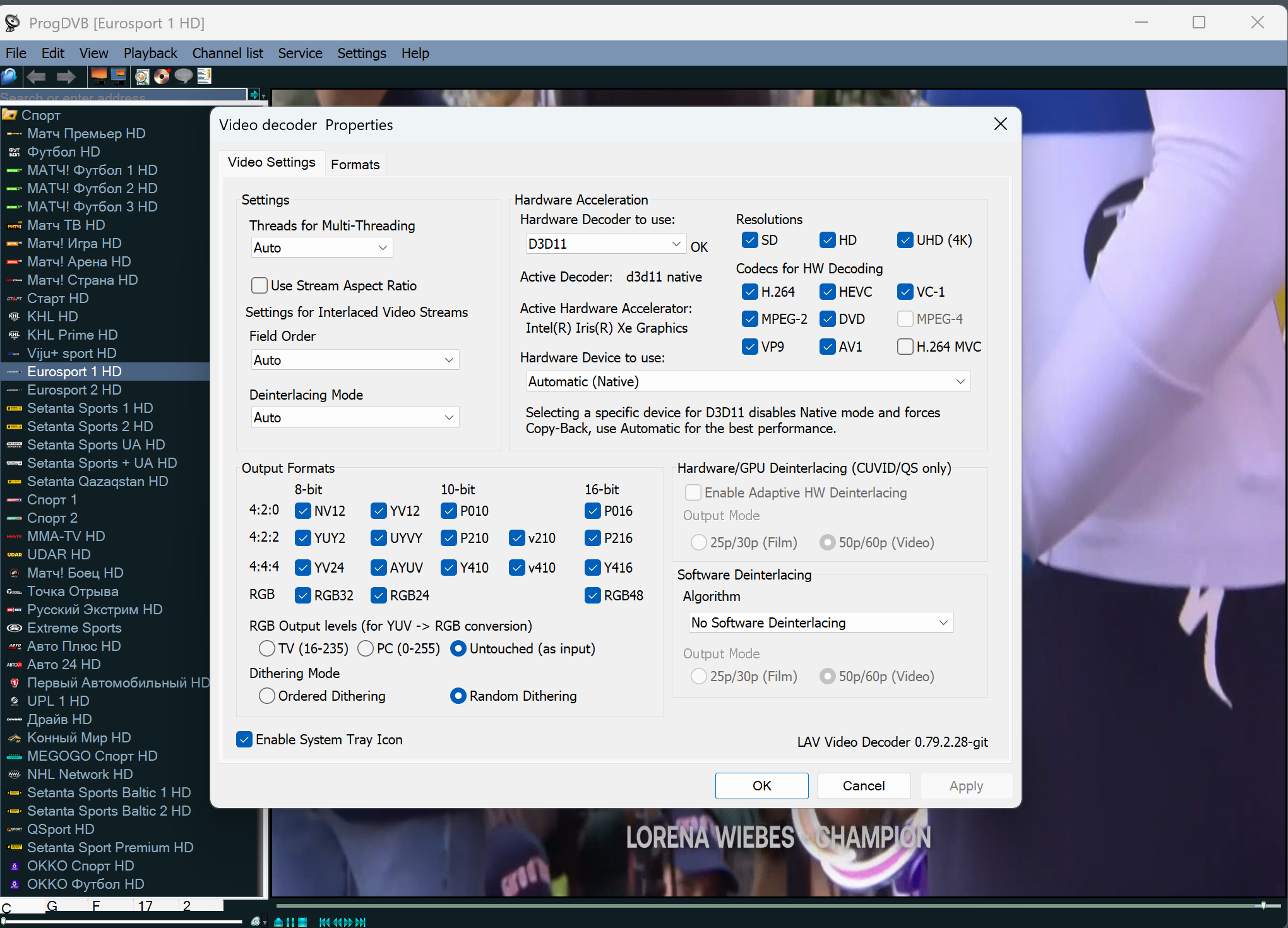 Я же выкладывал скрин, там другая версия LAV. Если удалить установленный LAV и зарегистрировать C:\Program Files\ProgDVB x64 Network Edition\LAVVideo.ax, то будет вызываться он, см. скриншот. Но это не влияет, работает всё так же.