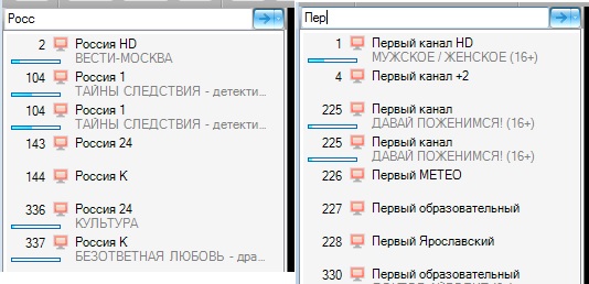 В результате, так как на стороне клиента всё одним списком и нет групп, которые нужно делать руками (хотя по правде могли бы скачиваться с сервера) приходится искать каналы быстрым поиском.