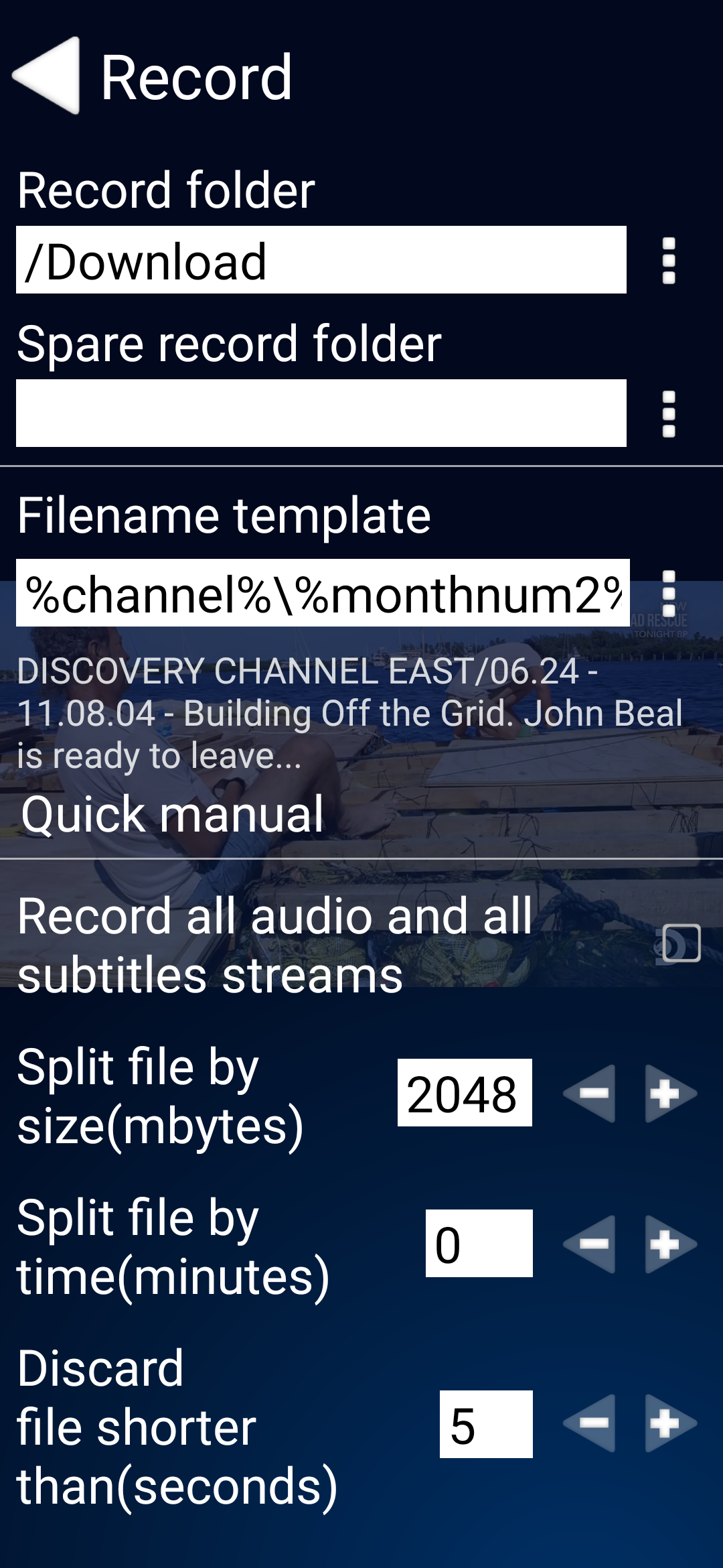 Re: Recording Error from ProgTV on Android.