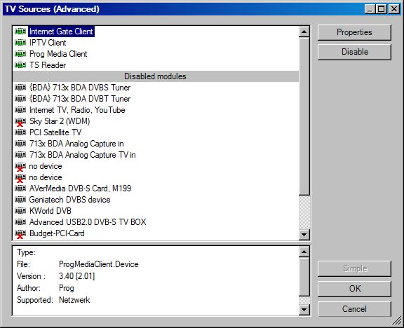 0 kB/s and Error is displayed in last line. Under Einstellung/DVSource BDA DVBS Tuner is disabled and will not enable.