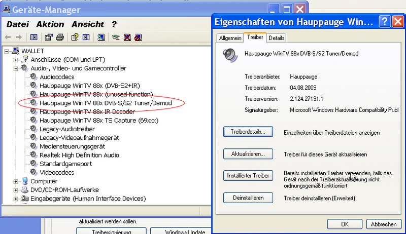 Verified the Card with Hauppauges WinTV7 - worked (picture and sound).