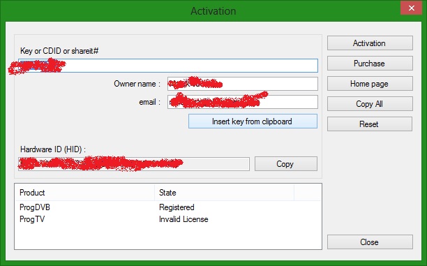 Later I have information that key is correct, please restart ProgTV.... OK!