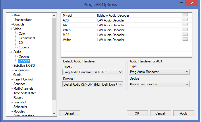 - LAV audio codec in AAC audio codec (enable all types in it)