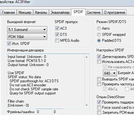[size=50] Железо: Acer KG271C, IP Q G2020@2.9, HD7770, 8 RAM, AMD audio, Yamaha RX-V465, LG 42LA790V, Prof 7300,7301, Tevii s470, TBS 6922se. Софт: W7x64, ProgDVBx32. Настройки: prog demux, audio-AC3Filter, WASAPI, video-Custom EVR, ArcSoft 2,28,497 [/size]