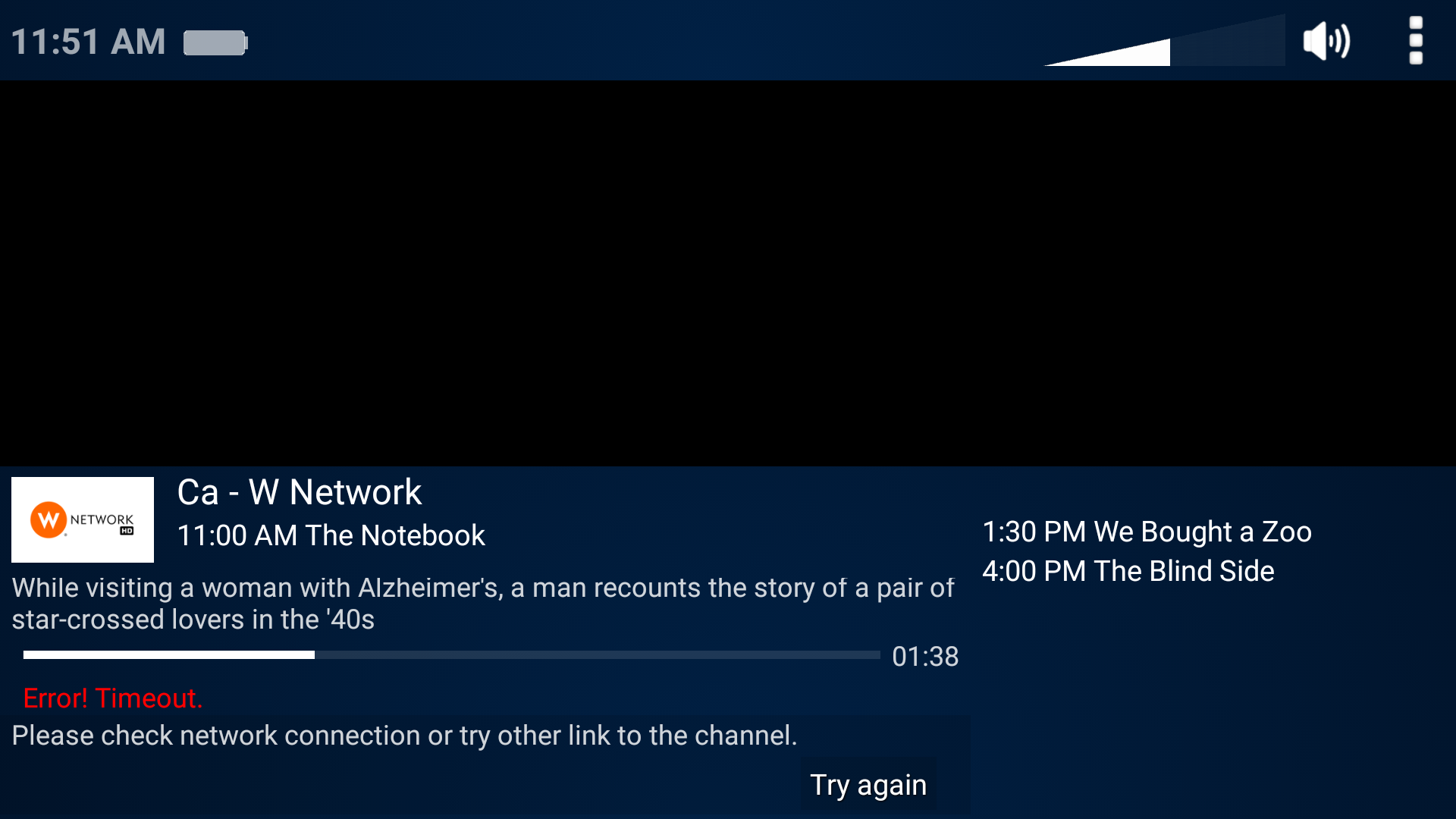 One last point. Ever since Verions 2.57.0 I have been getting Error-timeout (screen attached). The channel DOES NOT STOP PLAYING, and the message will disappear after about 5-10 seconds. I have checked the video stream on VLC and on another play, the ther are no timeout errors. I checked the internet speed directly on the Android box and it is a consistent 125Mbps. I have either uninstall or stopped all other application. I have clear all cache being used by other program. I have also cleared the cache in ProTV and reloaded the IPTV M3U's and EPG to make sure they were clean. The Adroid is a S912 processor with 3Mb memory and 16Mb storage. There is a lots of empty space in the memory as well as the storage.