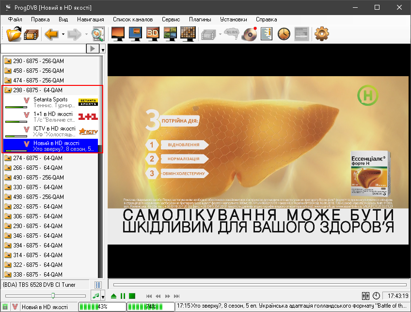 Я бы с радостью, но с TBS-картой ProgDVB нужно несколько раз подряд в некоторые частоты тыкать и заставлять "Искать", чтобы он их отсканировал/нашёл каналы.И лучше обычное сканирование использовать а не транспондера