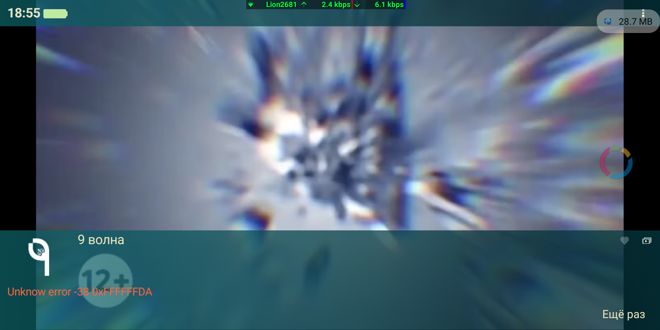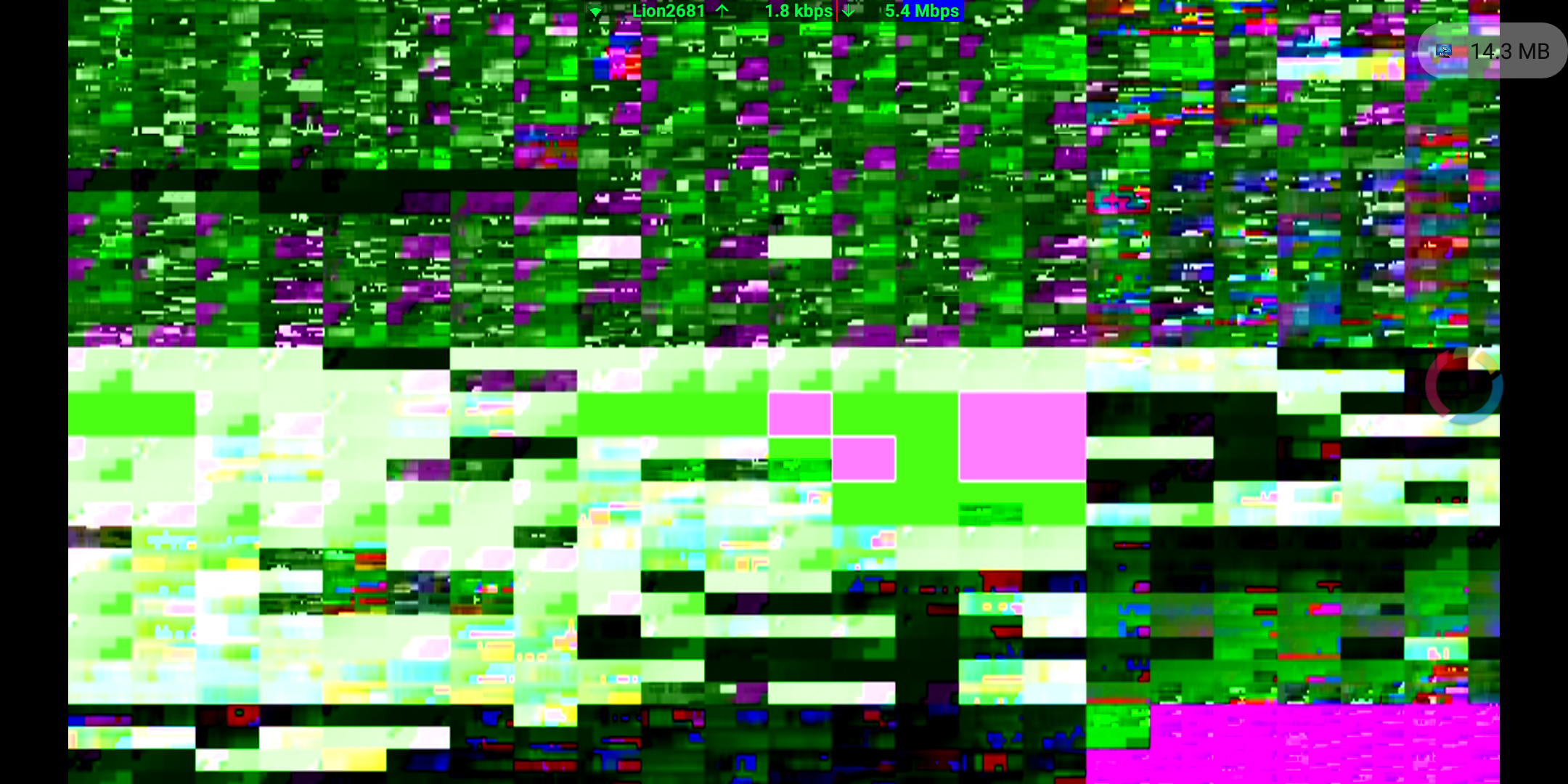 MediaCodec (OMX.qcom.video.decoder.mpeg2) - поток идёт (тоже не всегда отображается), видео идёт с сильными ошибками (смотри скриншот ниже), звук идёт с тресками как в движке FFmpeg. External player (Сторонние плееры) - воспроизводят поток отлично, без запинок.