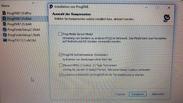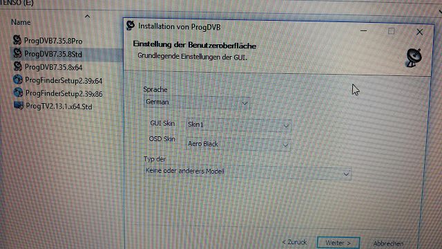 Software: ProgDVBnet6 habe ich zuerst von der CD installiert, dann aber auch das neuste Program von progdvb.com : ProgDVB x64 7