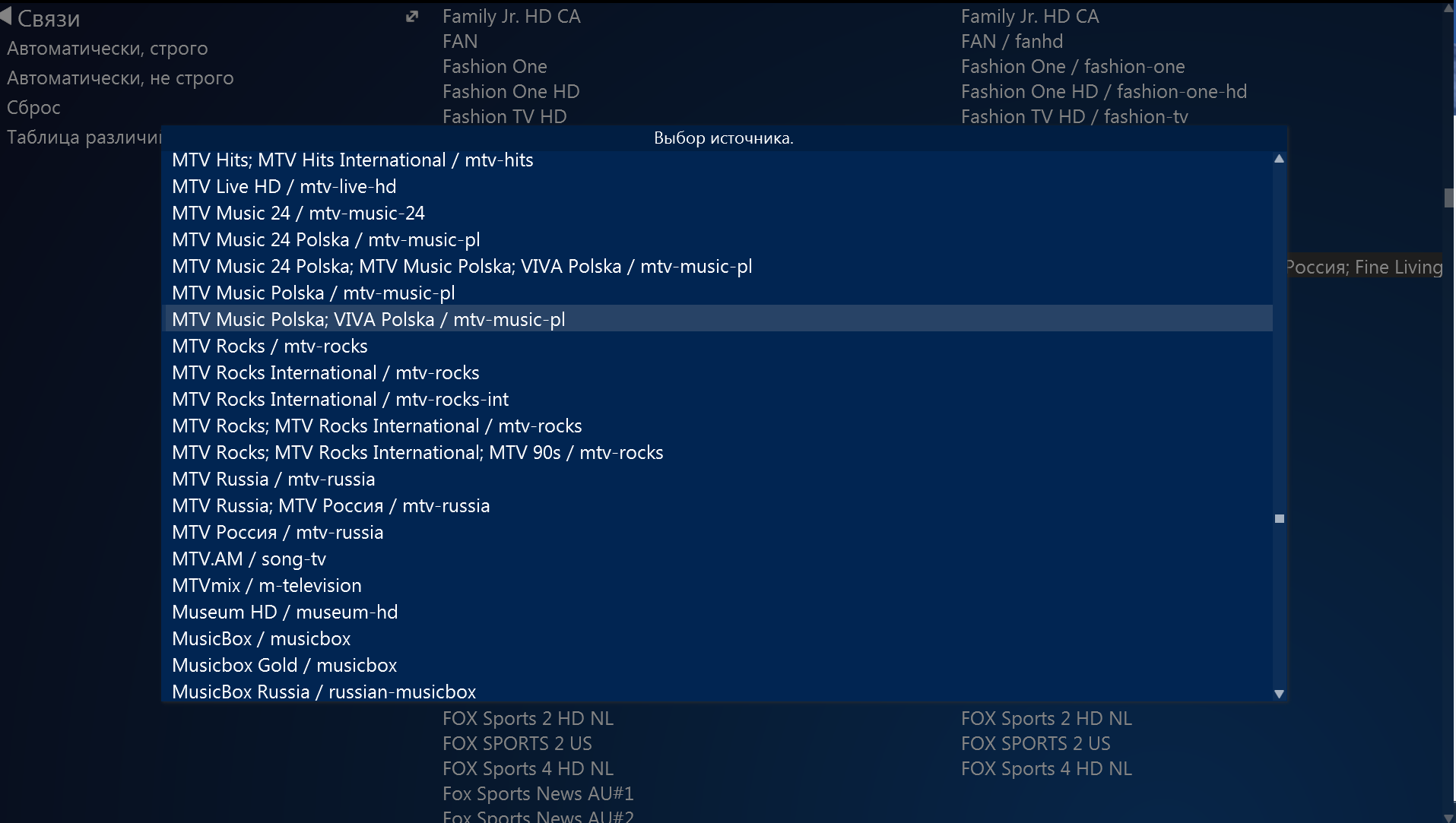 7. Подергав мышью бегунок вверх-вниз, появляется еще немного каналов.