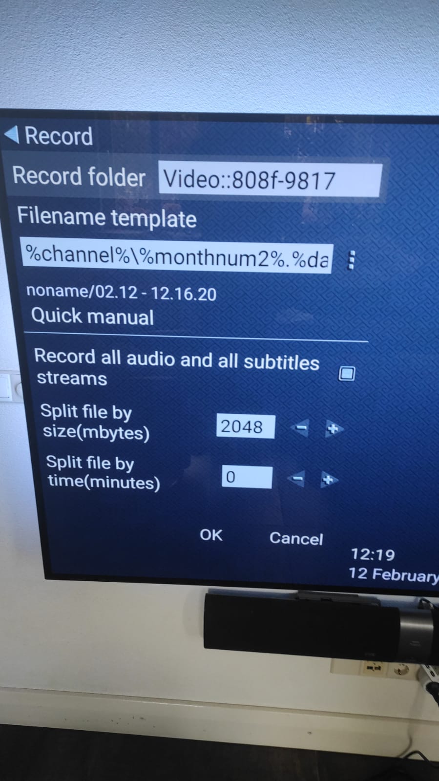 I use version 2.77.4 with all options. I have been able to setup the record folder (options, record) in the past. However I have changed the USB stick and I need to reset the recording path, but it doesnt allow me to do that it currently says : VIDEO::808f-9817 which was the identification from the old USB stick. When I select it , it gives a noise (plong) but it does not open any selection window or keyboard setting. All in all, I cant change the record path and cant record now.