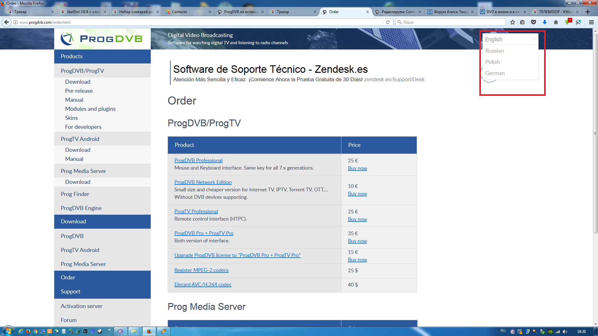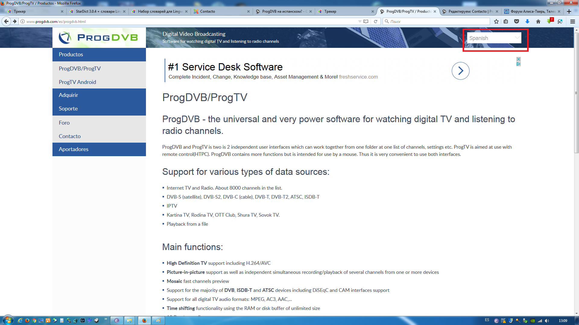 На ProgDVB/ProgTV испанский переключатель присутствует но после переключения вываливается в английский. Пошамань.