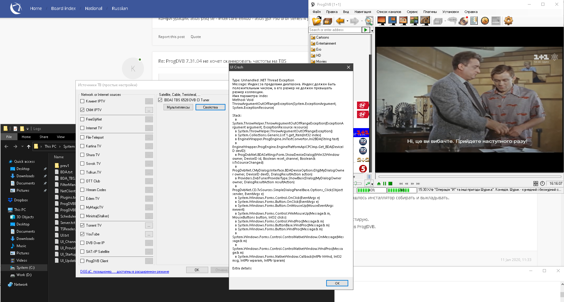 Так или иначе, спасибо за отзыв. Версии ProgDVB я разумеется тестирую и разумеется в win10, по этому без отзывов пребываю в уверености что всё стабильно. Но увы слишком много сценариев работы.