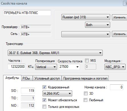 Киньте кто-нибудь параметры канала "Премьера НТВ-Плюс" в программе ProgDVB (SID, TID, NID, PIDы: PMT, PCR, Video, ECM) на частоте 12322 DVB-S2 8PSK SR 27500 FEC 3/4. Мой Technisat SkyStar USB 2 HD CI не находит данную частоту ни в автомате, ни вручную при поиске на данной частоте. На другом стационарном тюнере всё находится. Оба тюнера подключены к одной голове.