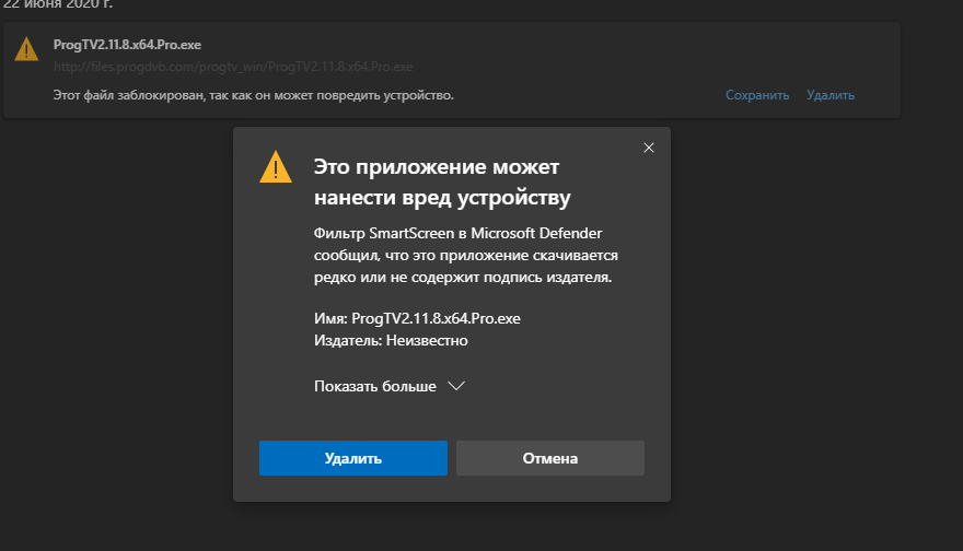 1. SmartScreen от Microsoft считает Вашу программу вредной.