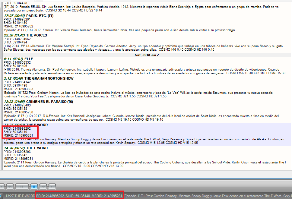 Since I updated to ProgDVB to 7.23.8 (I don't rembemer my old version) it appears in the EPG three new values I had never seen: PRID, SHID, MSRID.