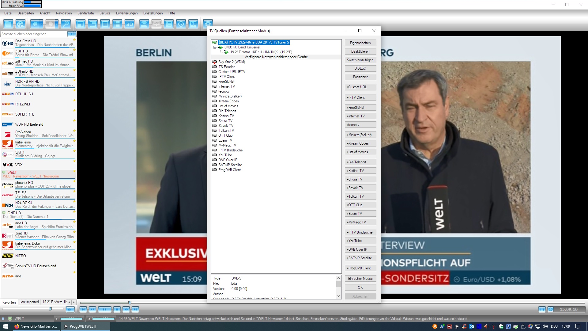 Today i stated just 30 Minutes ago.. All chnnels are working. T thoight it ist goood, but after 5 Minutes all 1 to 3 minutes freeze of video and audioö So i stopd progdvb activate Firefox and found the desireed film in Mediathek. Its running 100%. What is this stupid frezzmg ? Switsching shortly to another channel and back fixed this, but only for 1 to thre minutes.