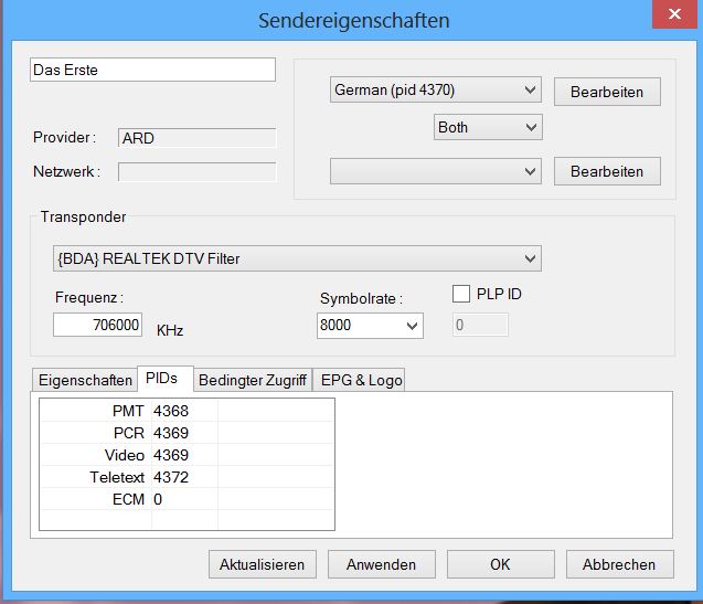 I also wonder that I cannot set the videotext page number for subtitles (ARD: 150, ZDF 777).