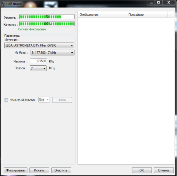 Тоже проблема с поиском в DVB-C. Тюнер AstroMeta Digital TV Dongle.